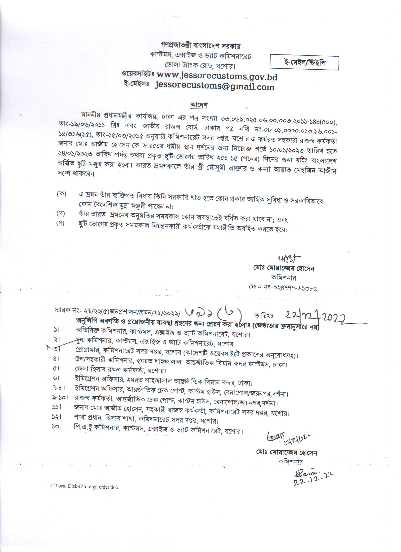 বহিঃ বাংলাদেশ ছুটি - জনাব মোঃআজীম হোসেন |