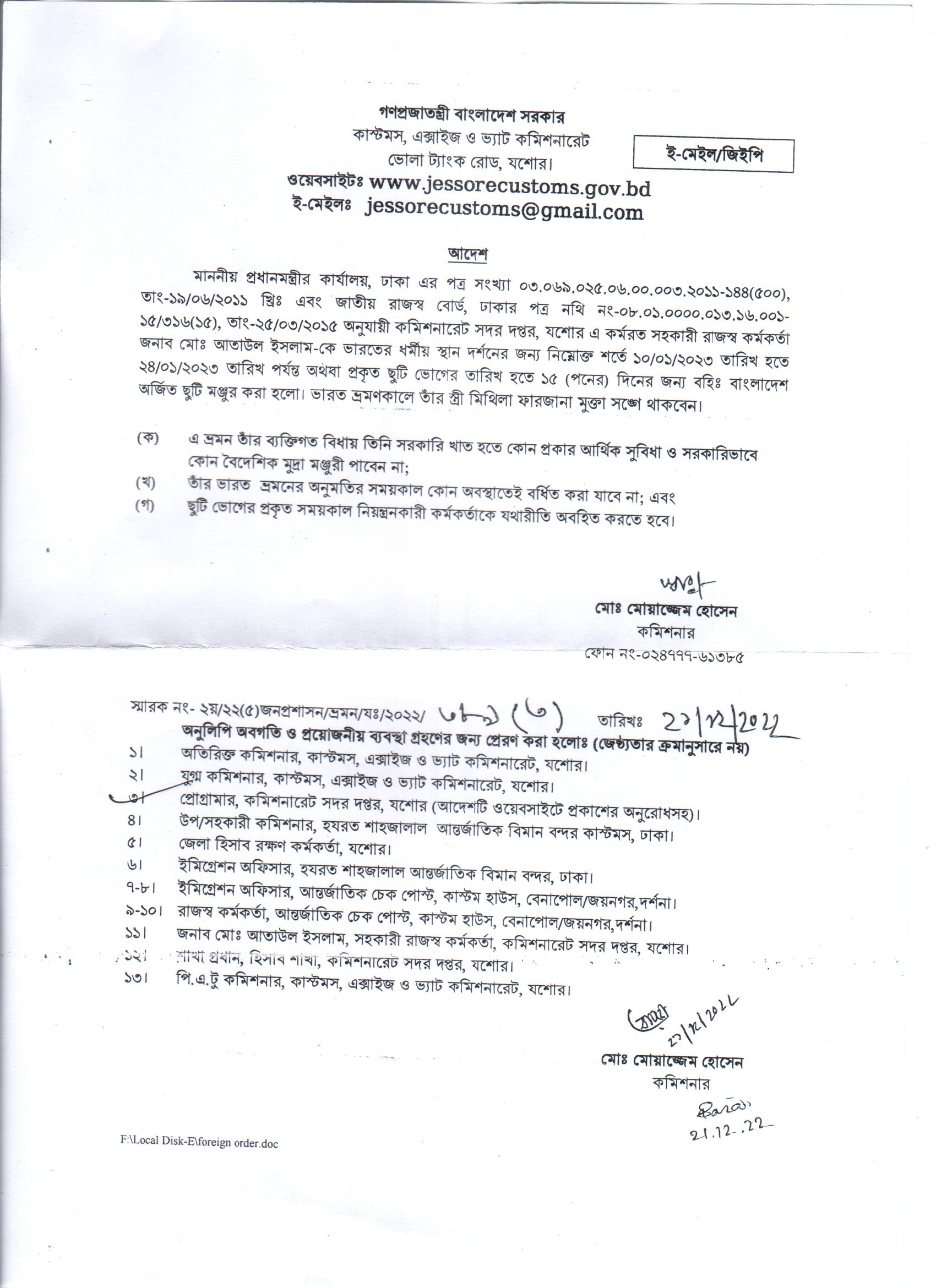 বহিঃ বাংলাদেশ ছুটি - জনাব মোঃ আতাউল ইসলাম |
